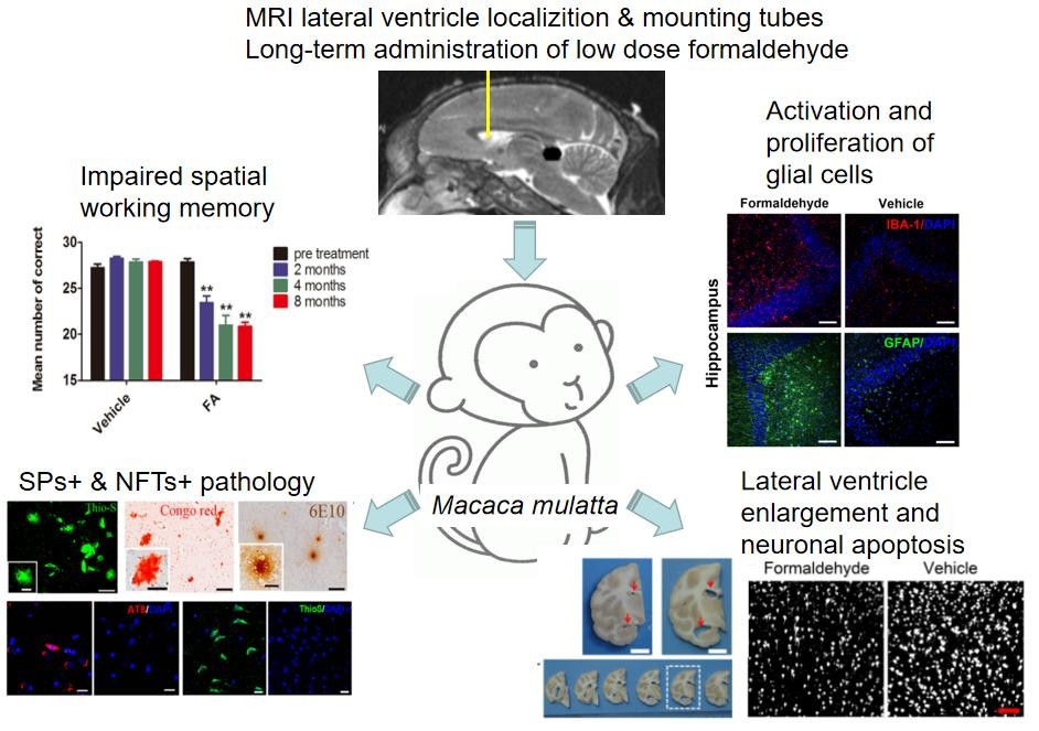 Rongwei Zhai, Joshua Rizak, Na Zheng, Xiaping He, Zhenhui Li, Yong Yin, Tao Su, Yingge He, Rongqiao He, Yuanye Ma, Meifeng Yang, Zhengbo Wang*, Xintian Hu*. Alzheimer's Disease-Like Pathologies and Cognitive Impairments Induced by Formaldehyde in Non-Human Primates. Current Alzheimer Research, 2018.11.2, 15(14):1304~1321.