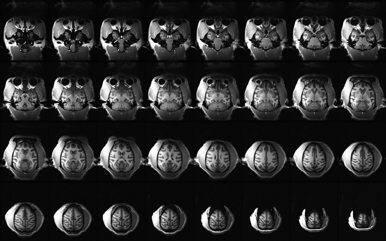 团队使用西门子Prisma 3.0T磁共振扫描仪磁共振扫描仪对实验猴脑部进行核磁扫描,该核磁设备质量符合国家相关标准,所有设备操作者均接受上岗培训, 以确保获得合格的高清晰度图像。
